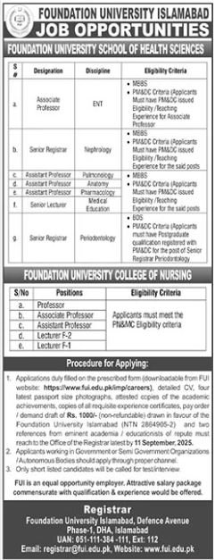 Job Details – Foundation University Islamabad 2025
